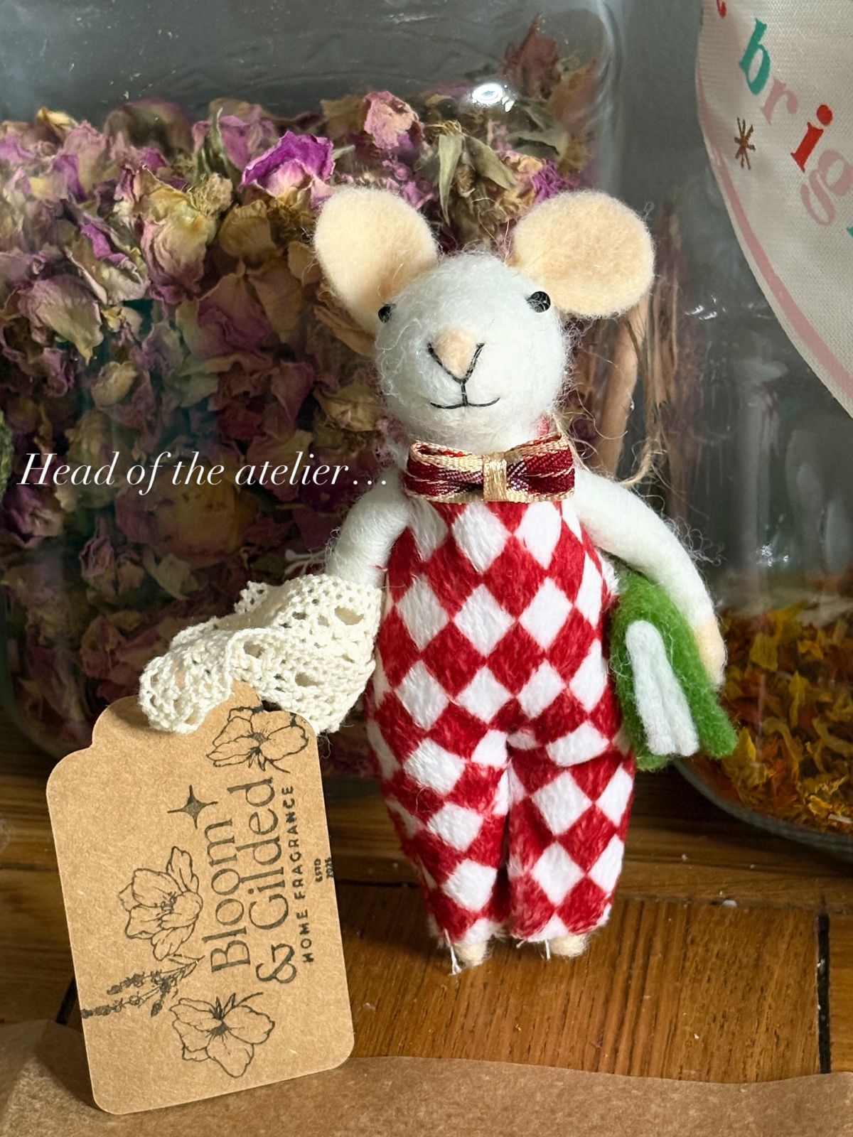Each day, while the house sleeps, the Atelier Mice scurry into the candle room. They curl themselves into empty wax boxes, nibble stray lavender stems and fuss over the placement of silk bows. They know the rhythm of the seasons as well as we do — and they arrive every year when the evenings draw in and the scent of fir branches fills the air.